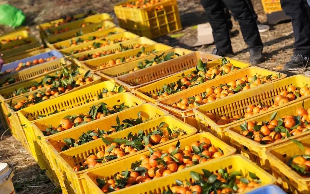 在高登家人的齊心協(xié)力下,果籃迅速被橘子填滿。10000斤橘子井然有序擺放在高登家人面前。
